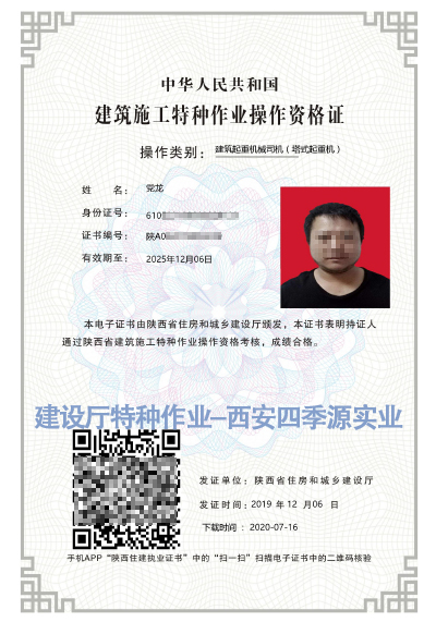 • 電工證、登高證、焊工證、塔吊證、司索工等